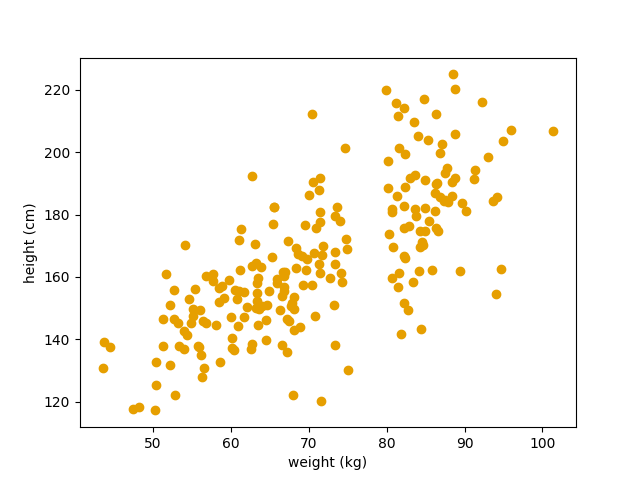 Her plotter vi vekt (x-aksen) mot høyde (y-aksen).